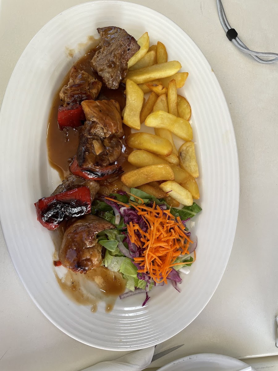 Nice and clean restaurant with friendly service. The lady was smiling and brought everything correct. Food was good as well. Tried Chicken with Onion sauce and it was nice to eat. Also, mixed kebab was delicious. Pizzas were average but tasty. We ordered papas and it was nice. Location was little bit hard to reach to the seating area. And, prices were affordable, was not expensive. Recommended.